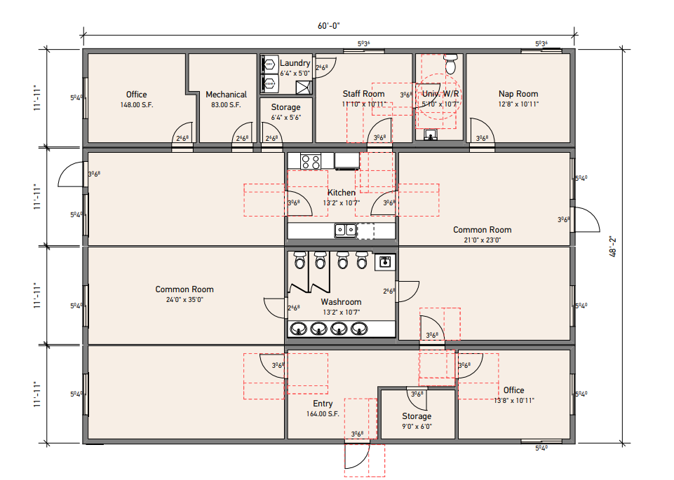 - Dimensions:: 48' x 60' x 11'7"